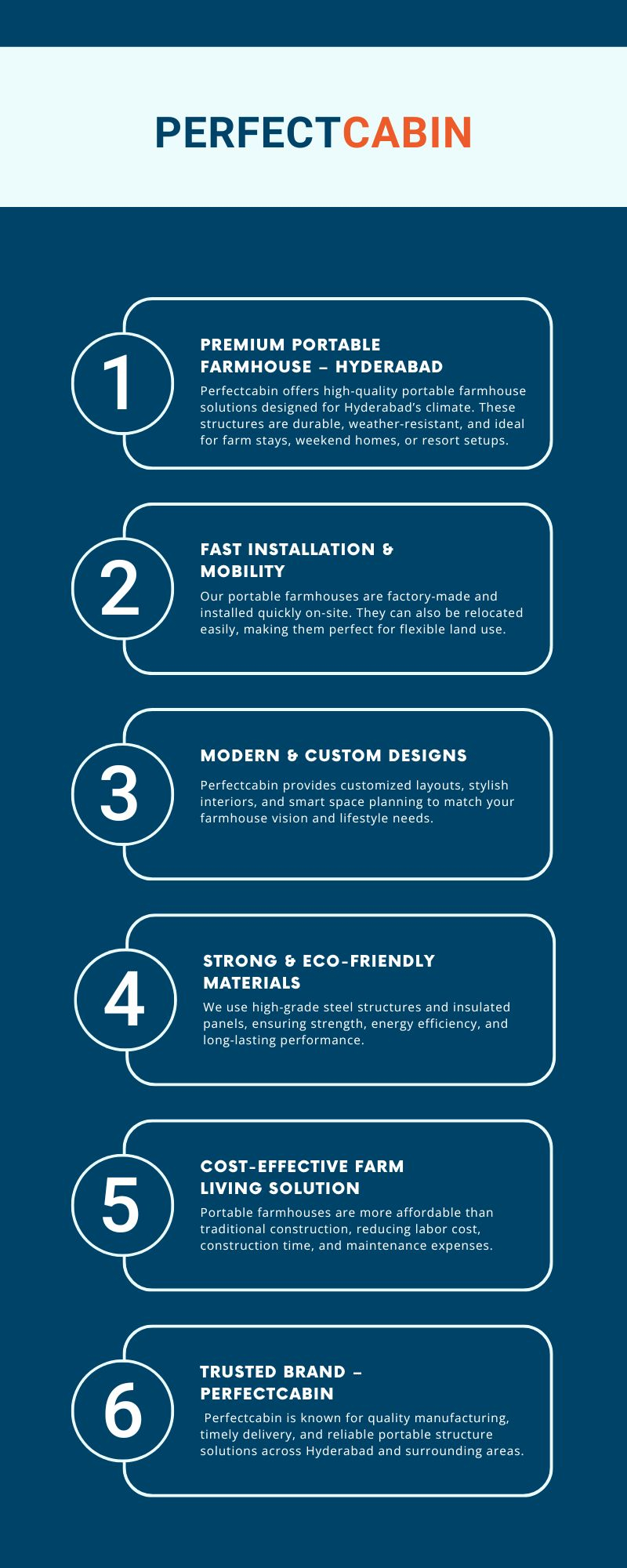 Perfectcabin offers high-quality portable farmhouse solutions designed for Hyderabad’s climate. These structures are durable, weather-resistant, and ideal for farm stays, weekend homes, or resort setups.