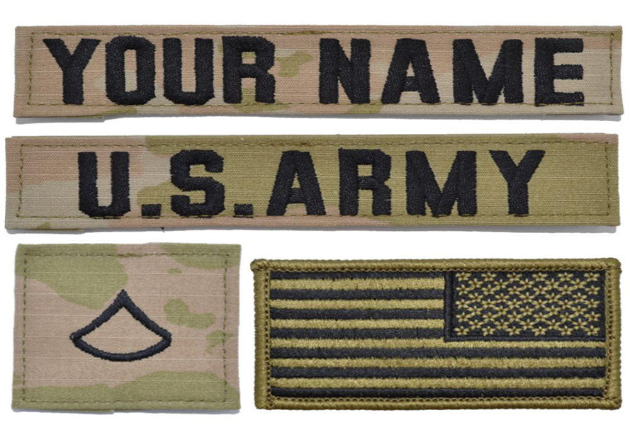 • Army OCP Name Tapes Velcro Hook-Fastener, 5×1 in., Spice-Brown-Free 3-Color OCP Hook-and-loop army OCP name tapes Velcro style: 5×1 in., black thread, ¾-in. letters, 3-color OCP background. Peel, press, wear; passes scotch-tape test and survives 50+ laundry cycles. Optional sew-on upgrade for permanent bond. https://rushpatch.com/blogs/news/comprehensive-guide-us-army-name-tapes-ocp