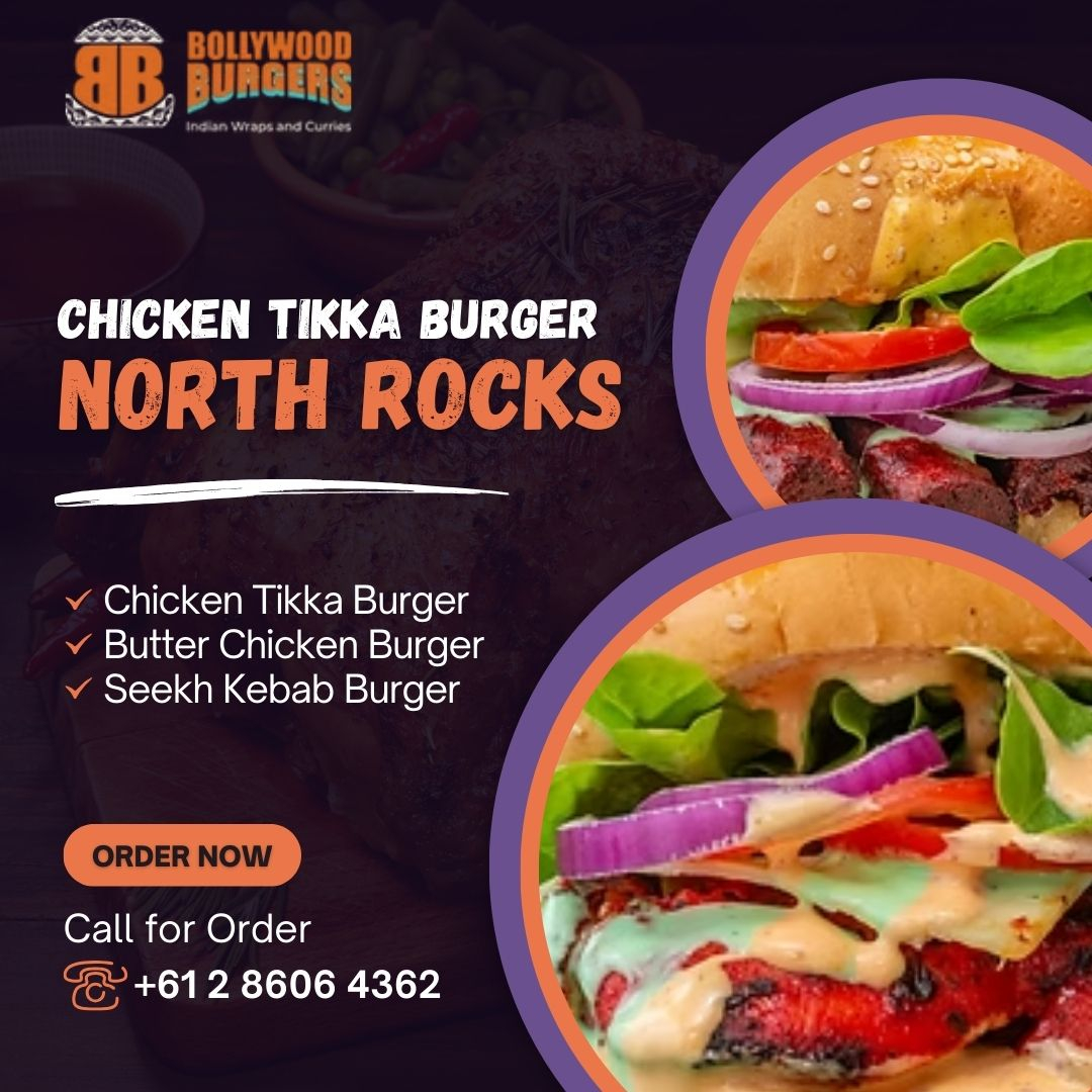 Bollywood Burgers is well known for its delicious Chicken Tikka Burger North Rocks area food lovers enjoy. The chicken tikka is cooked with Indian spices and served fresh in soft burger buns. This Indian fusion restaurant in Sydney makes sure every burger is juicy and full of flavor. Many customers visit Bollywood Burgers to enjoy their famous chicken tikka burger with tasty sauces and toppings. If you are near North Rocks and want something spicy and filling, the Chicken Tikka Burger North Rocks from Bollywood Burgers is a great choice for a satisfying meal. Visit us for Chicken Tikka Burger North Rocks:- https://www.bollywoodburgers.com.au/indian-chicken-burger-in-north-rocks