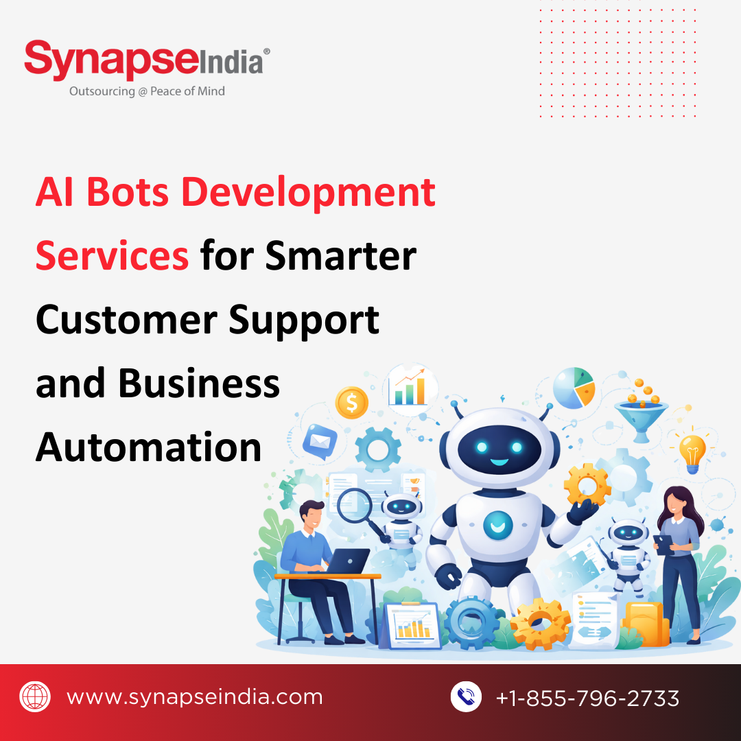 AI Bots Development Services for Smarter Business Automation AI bots development services help businesses automate customer support and routine processes with speed and accuracy. From handling queries and tracking requests to supporting workflows, AI bots improve response times, reduce manual effort, and support smoother day-to-day business operations. Know more: https://www.synapseindia.com/services/ai-chatbot-development.html