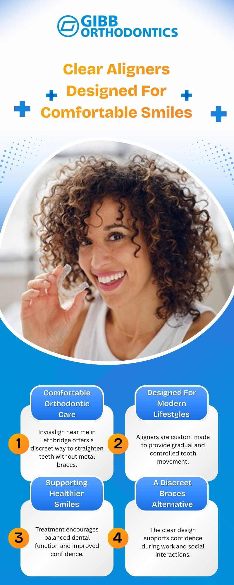 Gibb Orthodontics provides invisalign near me in Lethbridge for patients seeking a clear, comfortable, and effective orthodontic option. Their clinic emphasizes precision planning, patient convenience, and long-term oral health. Invisalign treatment supports improved alignment, reduces dental stress, and promotes balanced smiles through carefully guided orthodontic care for the local community.