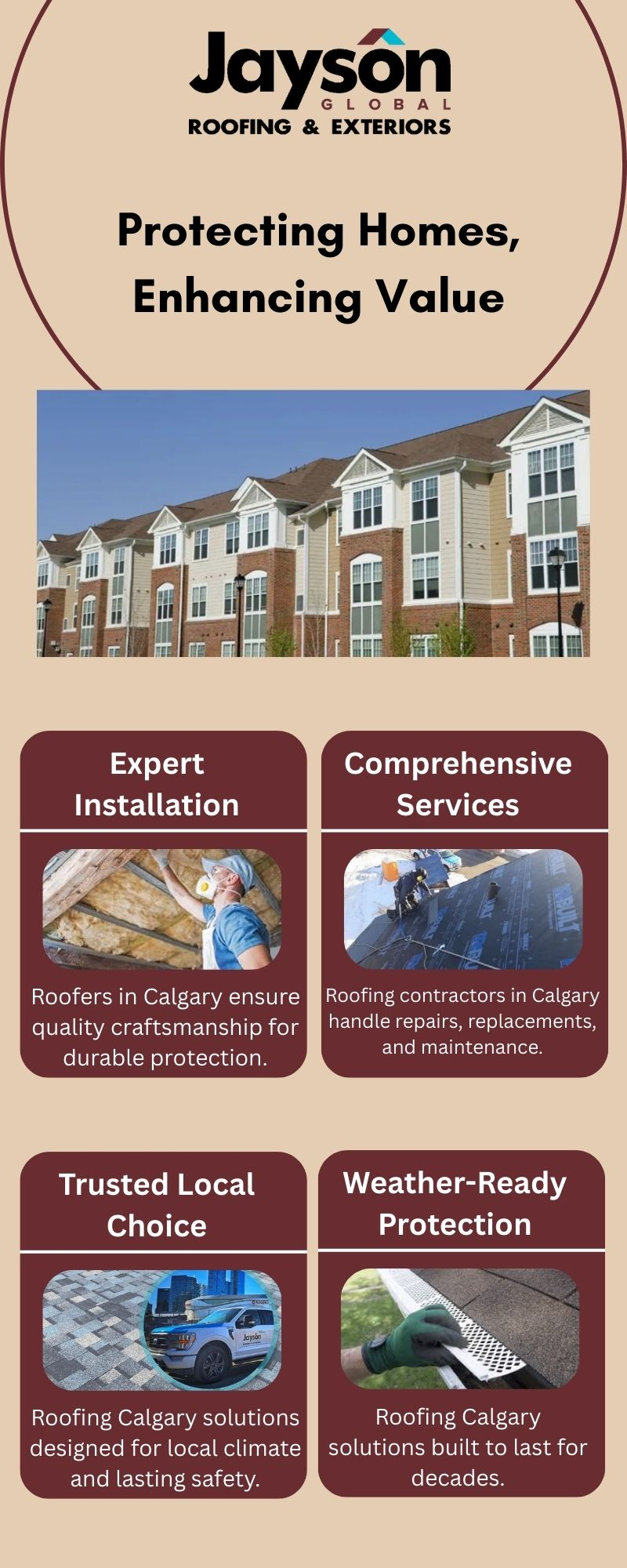 Expert Roofers Providing Comprehensive Residential and Commercial Roofing Jayson Global Roofing and Exteriors is recognised among skilled roofers Calgary. As experienced roofing contractors Calgary, the company delivers high quality roof installation, repair, replacement, and maintenance services. With a commitment to strong workmanship, they ensure homes and businesses receive durable roofing Calgary solutions built to last. For more information, visit https://jaysonglobal.com/