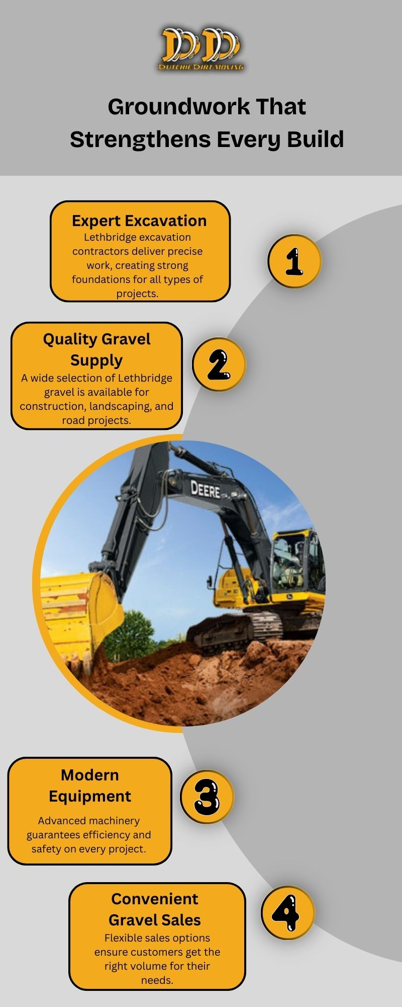 Dutchie Dirt Moving Excavation Services and Gravel Supply Dutchie Dirt Moving provides professional solutions as Lethbridge Excavation Contractors while offering high quality Gravel and Gravel Sales. The company delivers excavation, site preparation, gravel supply, and hauling services with reliable expertise, ensuring projects are completed efficiently for both residential and commercial needs. For more information, visit https://dutchiedirtmoving.com/