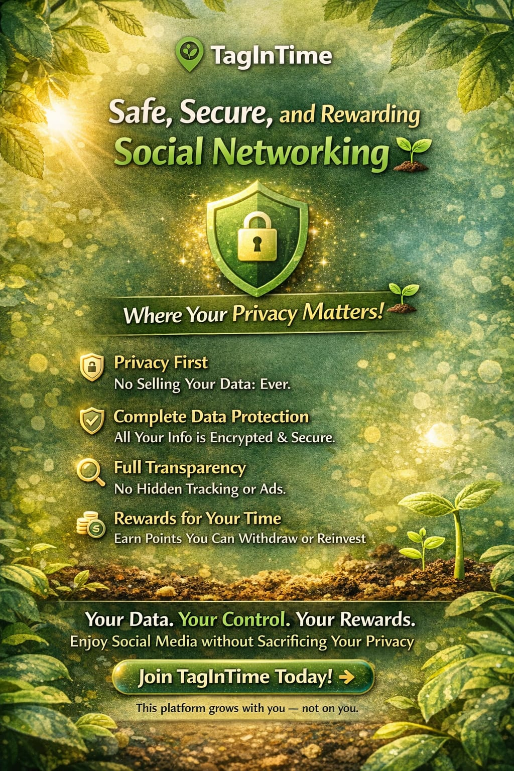 TagInTime offers secure, privacy-first social networking with real rewards.