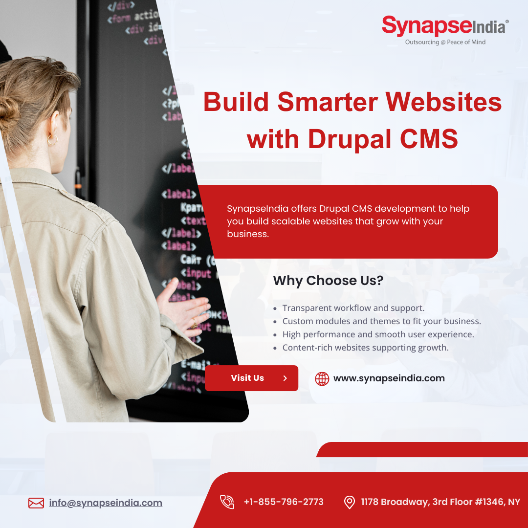 Our Drupal CMS development service helps you create sites that grow with your business. From custom modules to smooth content management, we make sure your website works the way you need it to. Visit us at: https://www.synapseindia.com/technology/drupal-development-company.html